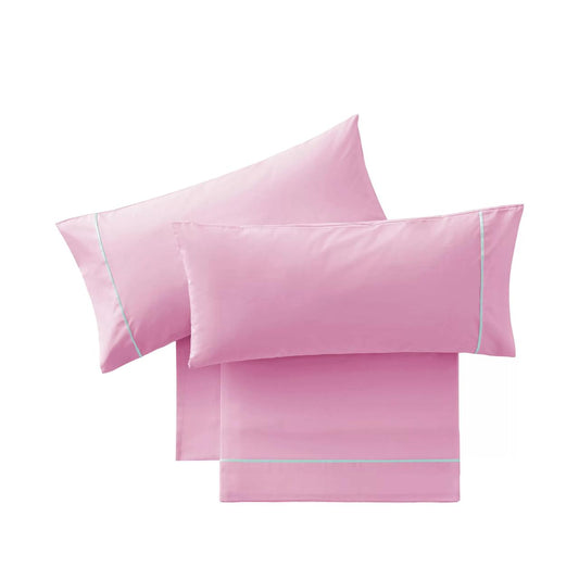Parure de draps en Coton Rose avec Bordure Bleue