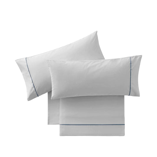 Parure de draps en Coton Gris avec Bordure Bleu