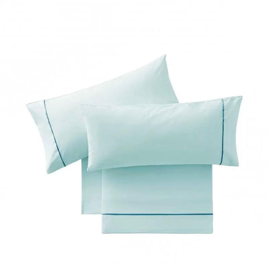 Parure de draps en Coton Bleu avec Bordure Bleue Foncée