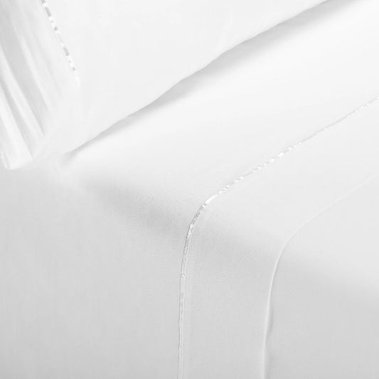 Parure de draps en Coton Blanc avec Bordure Bleu