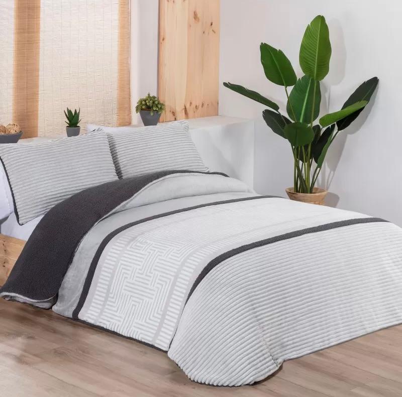 Couette très douce et chaude avec motifs et revers en sherpa, idéale pour les mois d'hiver. Conçue avec différents tissus dans différentes textures.