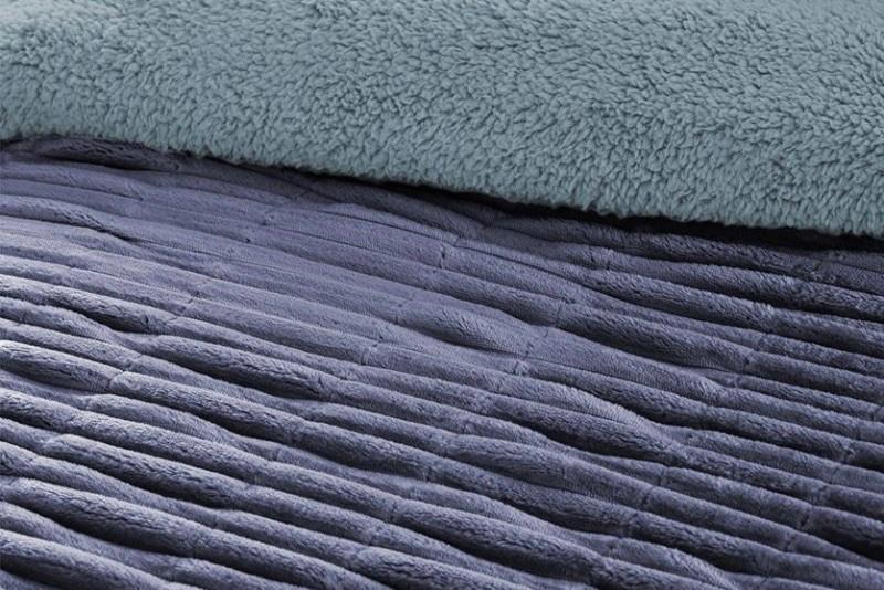 Motif ondulé avec relief jacquard sur une face et dos en sherpa teinté.