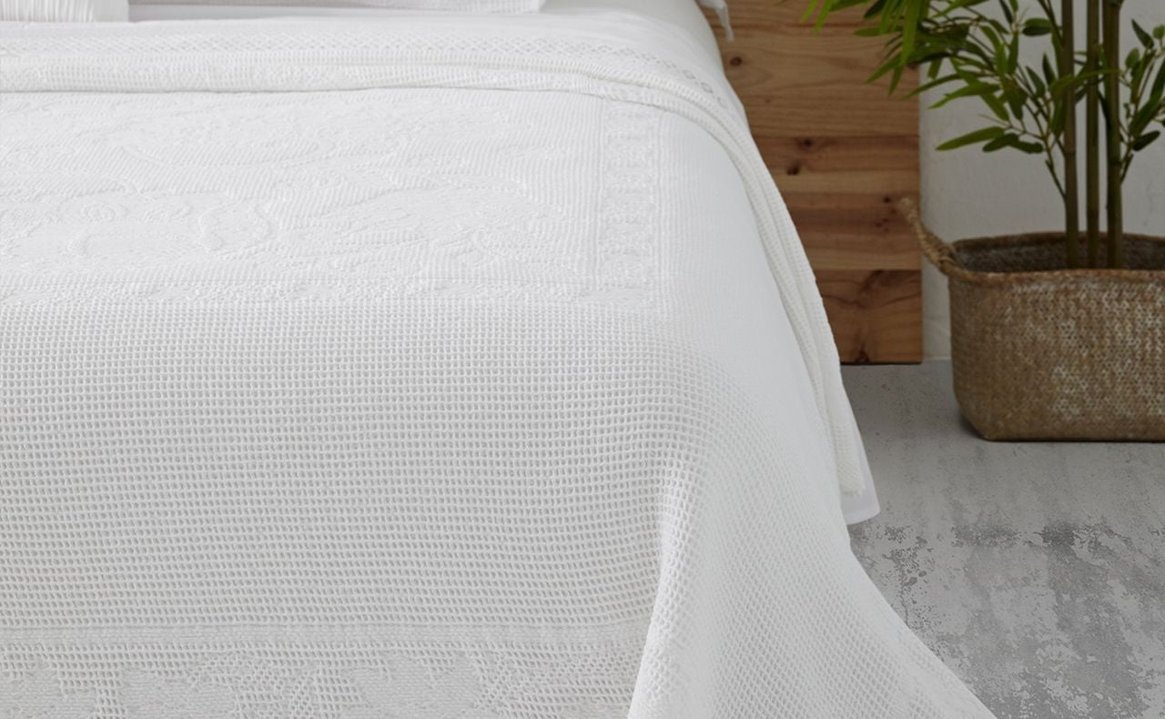 Ensemble Couvre-lit Jacquard en Coton Au POINT CROCHET en Blanc