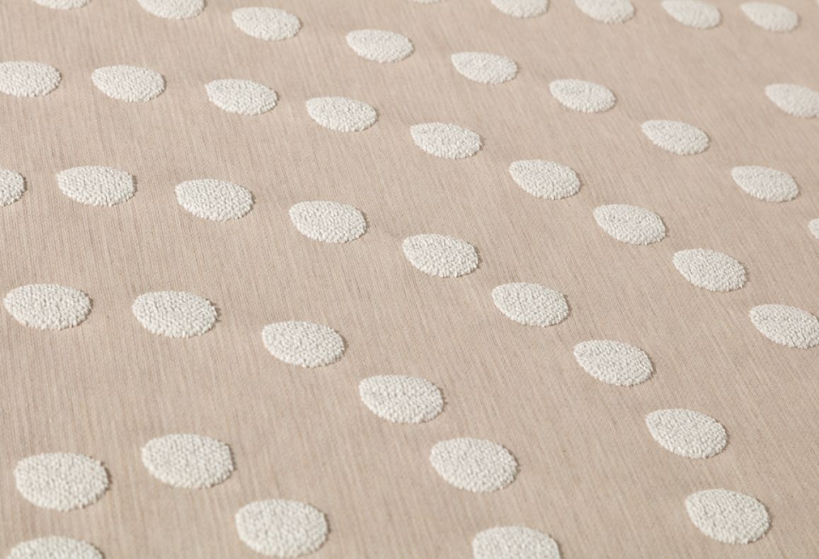 Parure de lit tissé en Jacquard, avec des pois formant des silhouettes en relief au toucher bouclé. ce couvre-lit arbore un motif continu en deux nuances de couleur. La texture irrégulière lui confère une touche distinctive, déclenchant une explosion de sensations au toucher.
