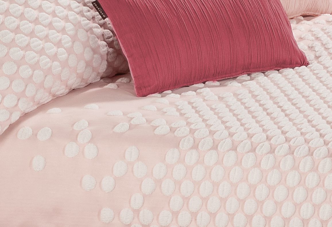 Parure de lit tissé en Jacquard, avec des pois formant des silhouettes en relief au toucher bouclé. ce couvre-lit arbore un motif continu en deux nuances de couleur. La texture irrégulière lui confère une touche distinctive, déclenchant une explosion de sensations au toucher.